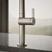 - Two-function pull-down sprayhead with touch control allows you to switch between aerated and Sweep sprays