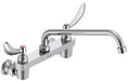 Double Handle 1.5GPM Ceramic Disc Wallmount Faucet Less Integral Stops with Blade Handles 11" Tubular Swing Spout and Antimicrobial by AgION from the Commercial Series.